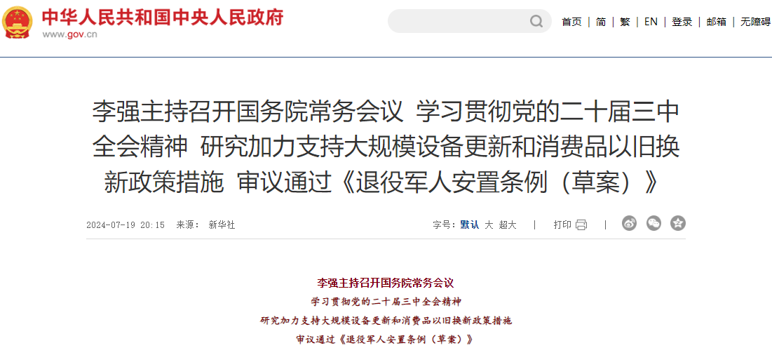 *********常務(wù)會(huì)議:推動(dòng)大規(guī)模設(shè)備更新和消費(fèi)品以舊換新支持老舊營運(yùn)貨車報(bào)廢更新
