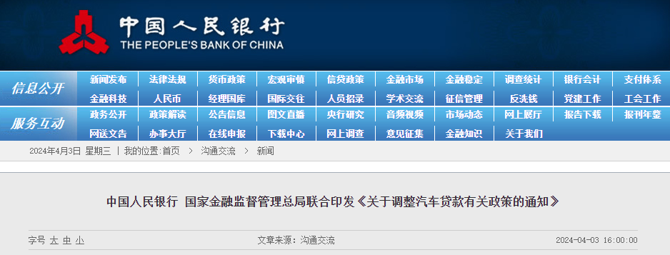 中國(guó)人民銀行等兩部門:鼓勵(lì)金融機(jī)構(gòu)適當(dāng)減免汽車以舊換新提前結(jié)清貸款產(chǎn)生的違約金