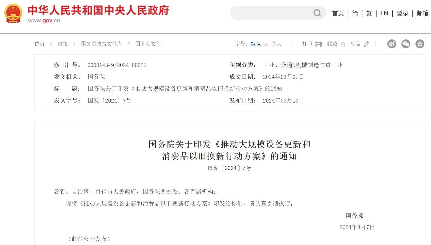 *********關(guān)于印發(fā)《推動(dòng)大規(guī)模設(shè)備更新和消費(fèi)品以舊換新行動(dòng)方案》的通知
