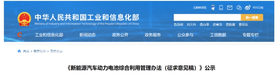 《新能源汽車動力電池綜合利用管理辦法(征求意見稿)》公示?
