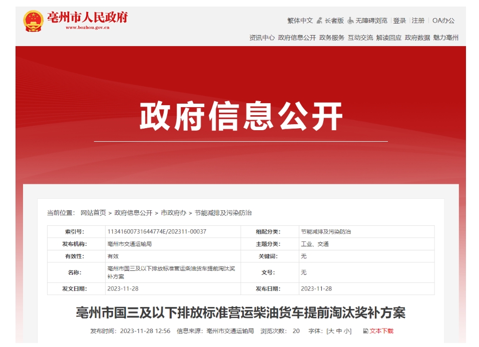 安徽省亳州市國(guó)三及以下排放標(biāo)準(zhǔn)營(yíng)運(yùn)柴油貨車提前淘汰獎(jiǎng)補(bǔ)方案