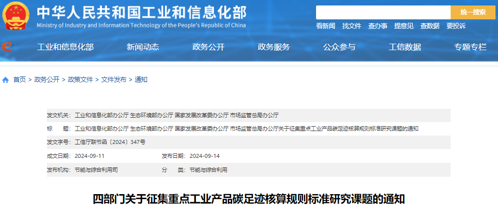 工信部等部門關(guān)于征集鋰電池、新能源汽車、光伏和電子電器等重點(diǎn)產(chǎn)品碳足跡核算規(guī)則標(biāo)準(zhǔn)研究課題的通知