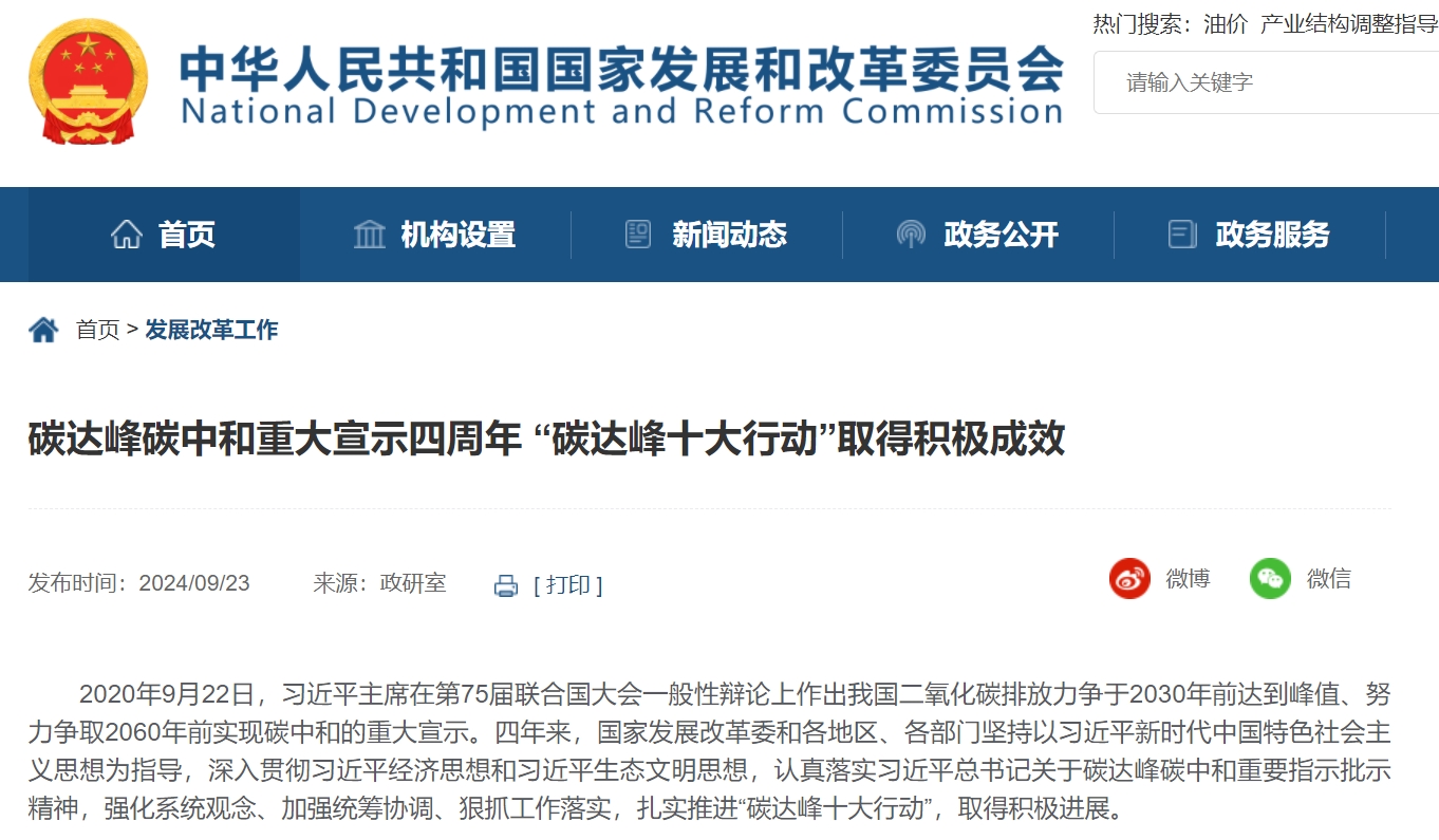 碳達(dá)峰碳中和重大宣示四周年“碳達(dá)峰十大行動(dòng)”取得積極成效