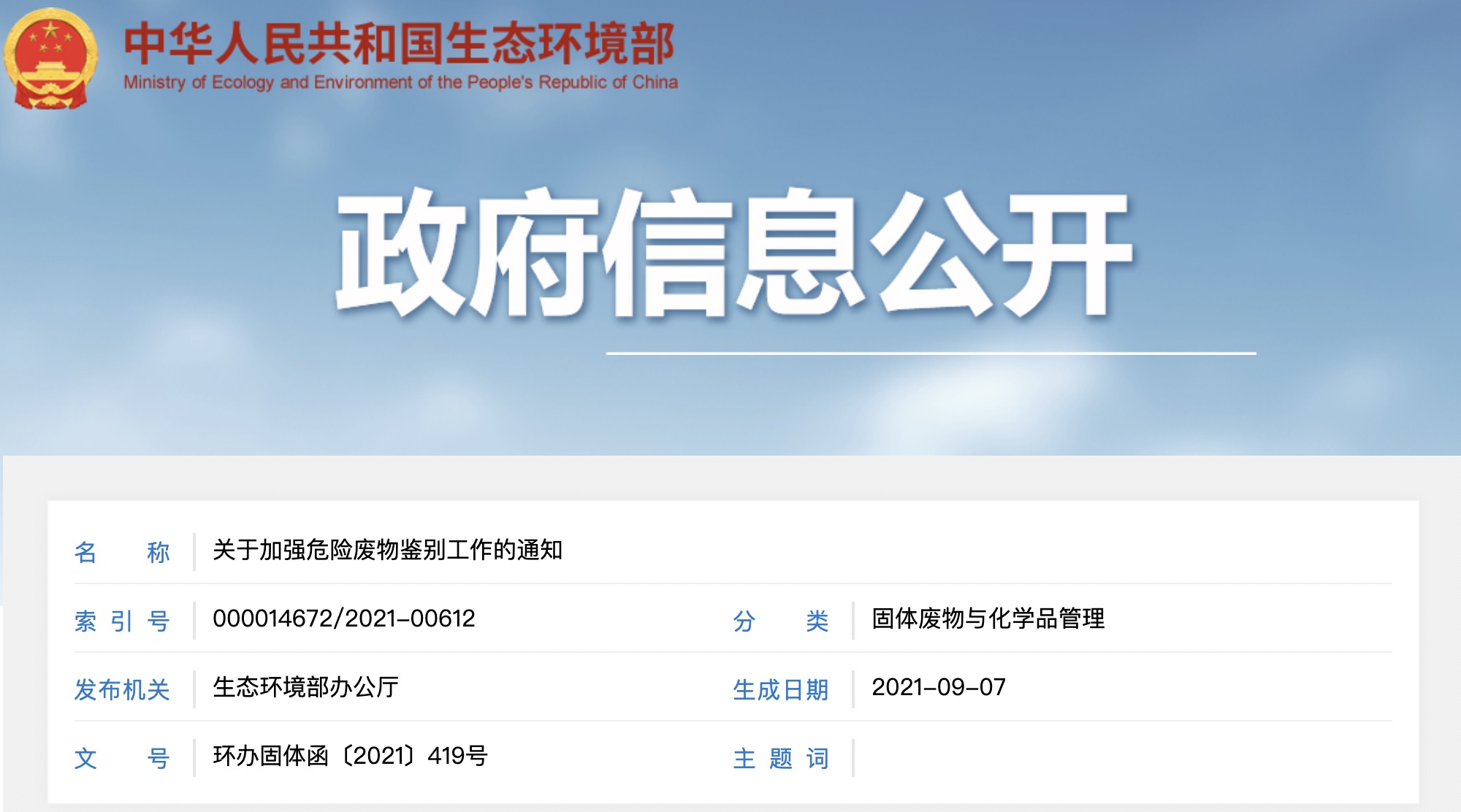 為貫徹落實《中華人民共和國固體廢物污染環(huán)境防治法》,加強危險廢物鑒別環(huán)境管理工作,規(guī)范危險廢物鑒別單位管理,現(xiàn)將有關(guān)事項通知如下。