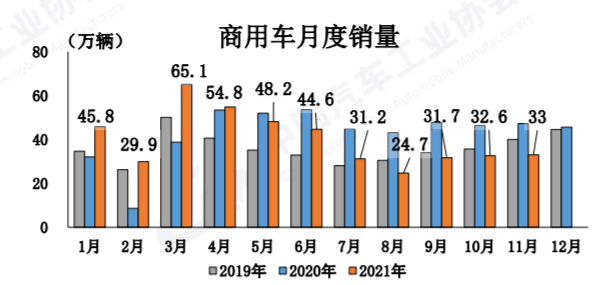 值得一提的是,去年12月汽車產(chǎn)銷水平位居全年最高,為283萬輛,再考慮到今年芯片供應(yīng)不足的問題,因此,今年12月汽車行業(yè)仍然面臨很大壓力。