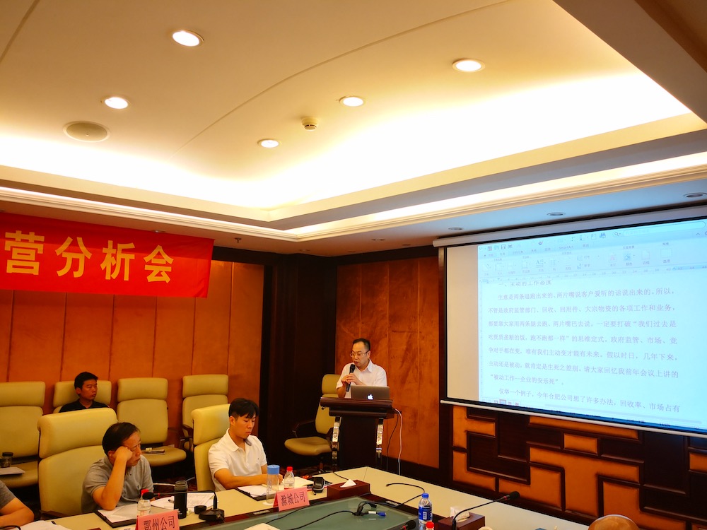 21日,集團(tuán)相關(guān)部門進(jìn)行了工作匯報。會議首先聽取財務(wù)部副總經(jīng)理兼內(nèi)審總監(jiān)程杰關(guān)于上半年集團(tuán)公司總體經(jīng)營情況的匯報;商務(wù)支持與物流部總經(jīng)理陳偉就回收和回用件兩大業(yè)務(wù)進(jìn)行了總結(jié)分析,相關(guān)數(shù)據(jù)有喜有憂;管理與文化部生產(chǎn)管理總監(jiān)徐永壽回顧了拆解與現(xiàn)場管理情況,安全環(huán)保意識、拆解隊伍管理、拆解質(zhì)量管理、ERP數(shù)據(jù)準(zhǔn)確性等方面同比有所提升和改善,但設(shè)備缺乏維護(hù)保養(yǎng)、回用件數(shù)據(jù)張冠李戴、有色入庫不及時等現(xiàn)象依然存在,在下半年的工作中要認(rèn)真加以改善和解決。