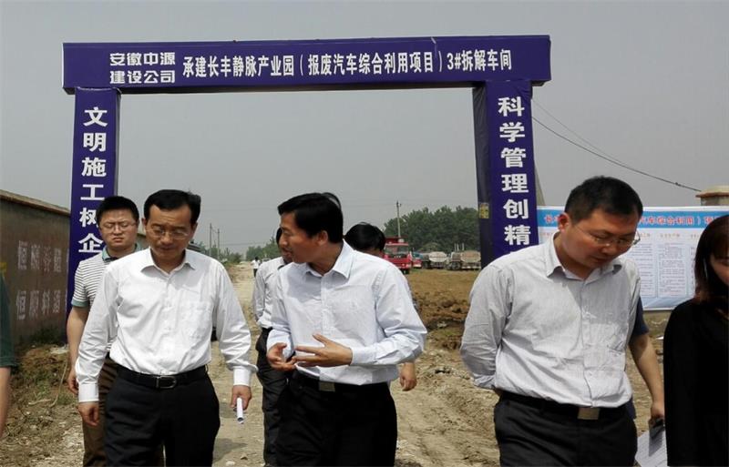 5月7日,合肥市長(zhǎng)豐縣委書記許華在集團(tuán)副總裁何學(xué)海的陪同下,深入中國(guó)玉成·合肥皖中報(bào)廢汽車回收有限責(zé)任公司調(diào)研,在實(shí)地察看了玉成有限公司投資實(shí)施運(yùn)作的長(zhǎng)豐靜脈產(chǎn)業(yè)園(報(bào)廢汽車綜合利用項(xiàng)目)建設(shè)工地,并認(rèn)真聽(tīng)取了副總裁何學(xué)海及晥中公司相關(guān)負(fù)責(zé)人的工作匯報(bào)后,許華指出,長(zhǎng)豐靜脈產(chǎn)業(yè)園(報(bào)廢汽車綜合利用項(xiàng)目)是資源回收利用、產(chǎn)業(yè)鏈延伸的亮點(diǎn),具有重要示范意義,大力發(fā)展再生資源產(chǎn)業(yè),變廢為寶,開(kāi)創(chuàng)了資源節(jié)約的可行路徑,激發(fā)了經(jīng)濟(jì)增長(zhǎng)的持續(xù)動(dòng)力,要求項(xiàng)目建設(shè)單位要加快建設(shè)速度,推動(dòng)項(xiàng)目順利建成投產(chǎn)。