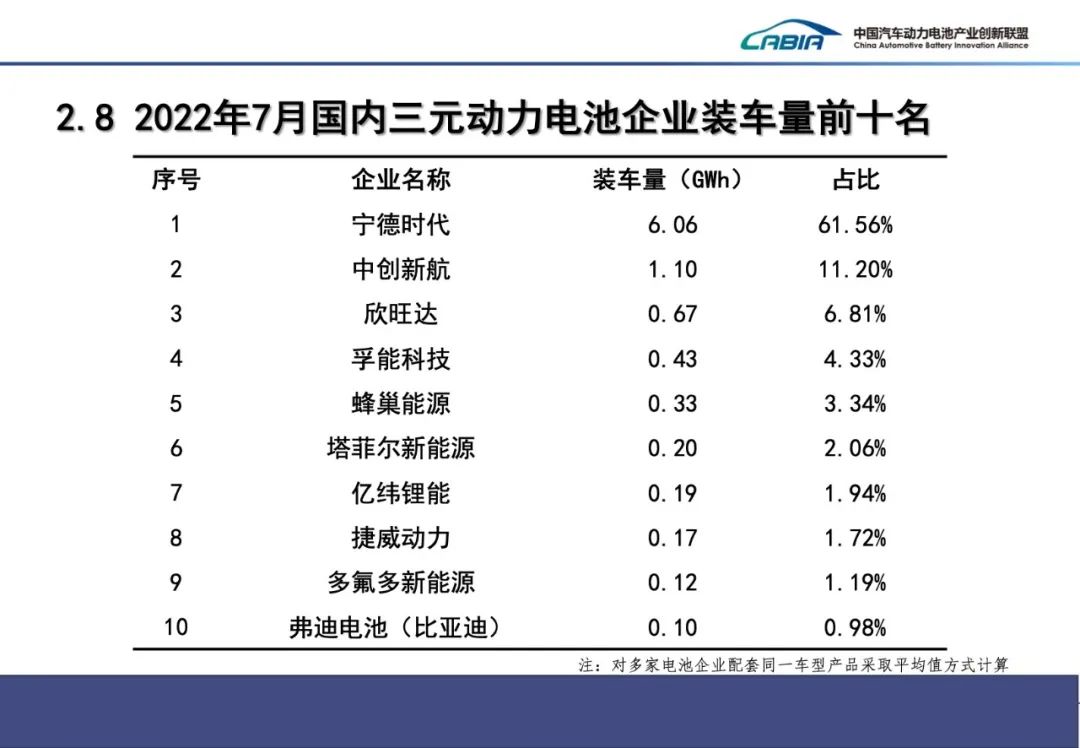 2022年7月動(dòng)力電池月度數(shù)據(jù)發(fā)布如下。